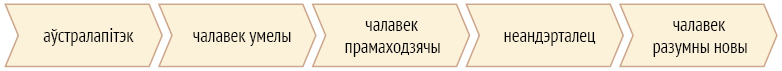 2–1. Ступені эвалюцыі ў напрамку да «чалавека разумнага»